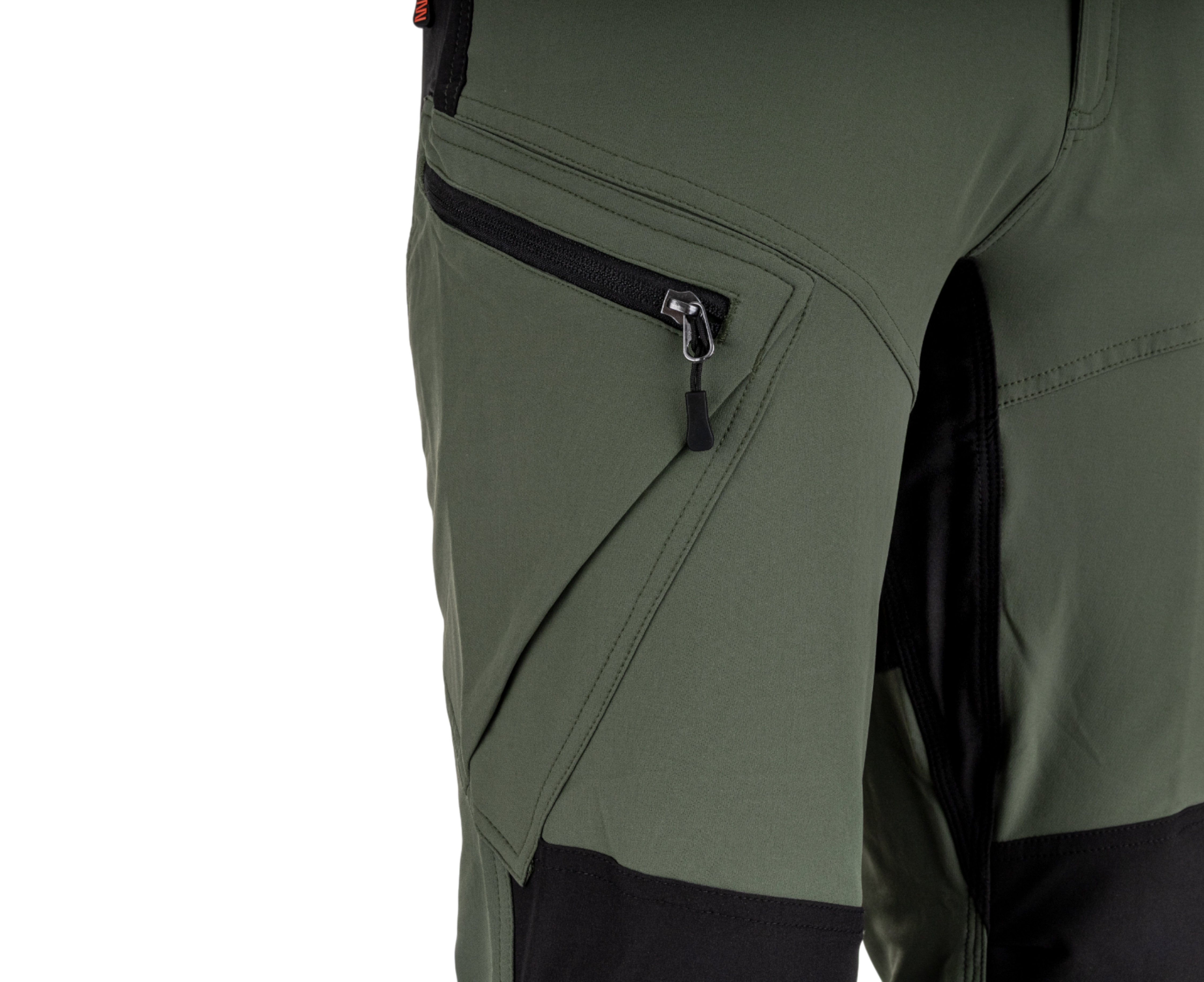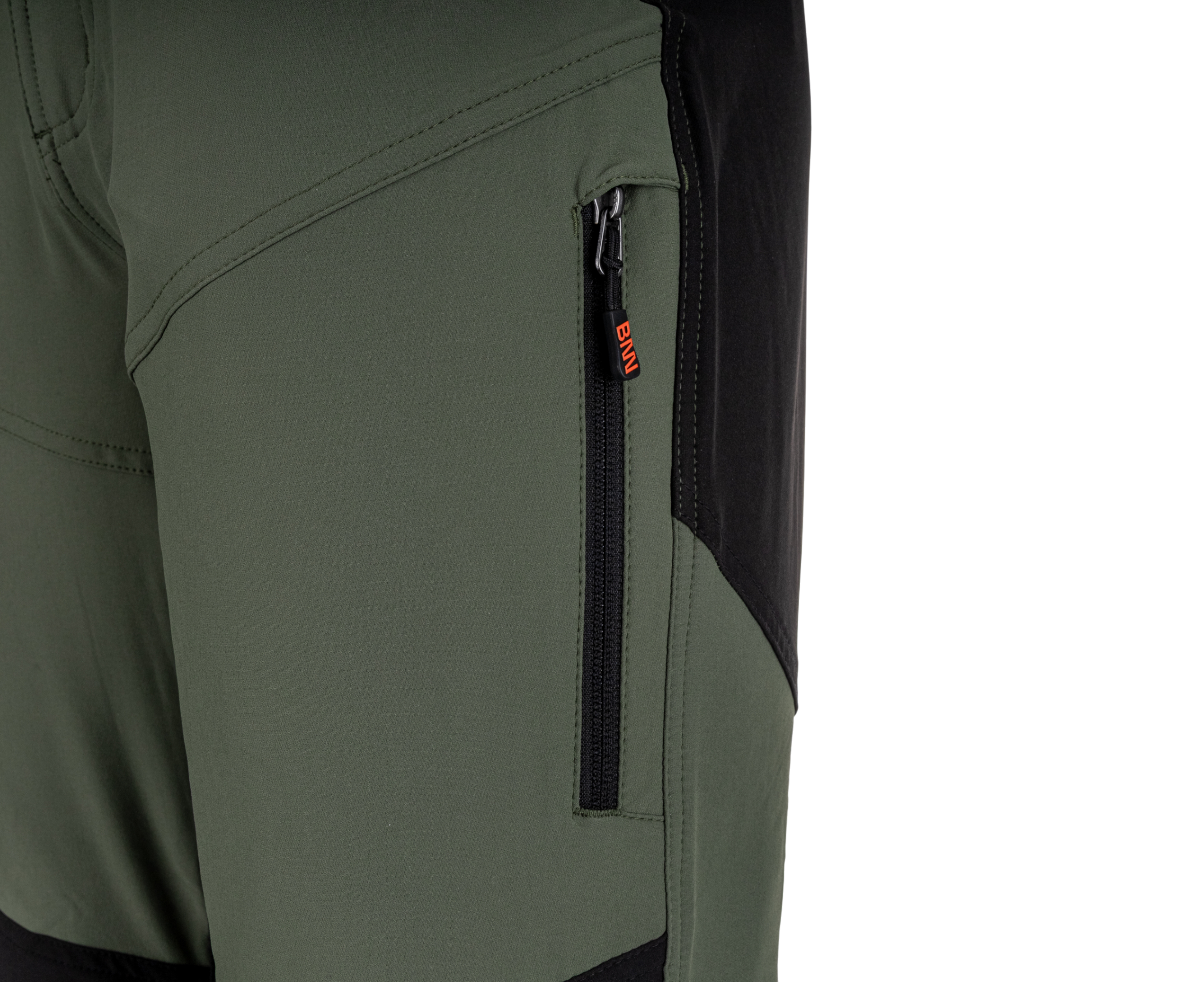 - 2 große seitliche Multifunktionstaschen mit Reißverschluss vorn (links – mit vertikalem Reißverschluss, rechts – mit horizontalem Reißverschluss)